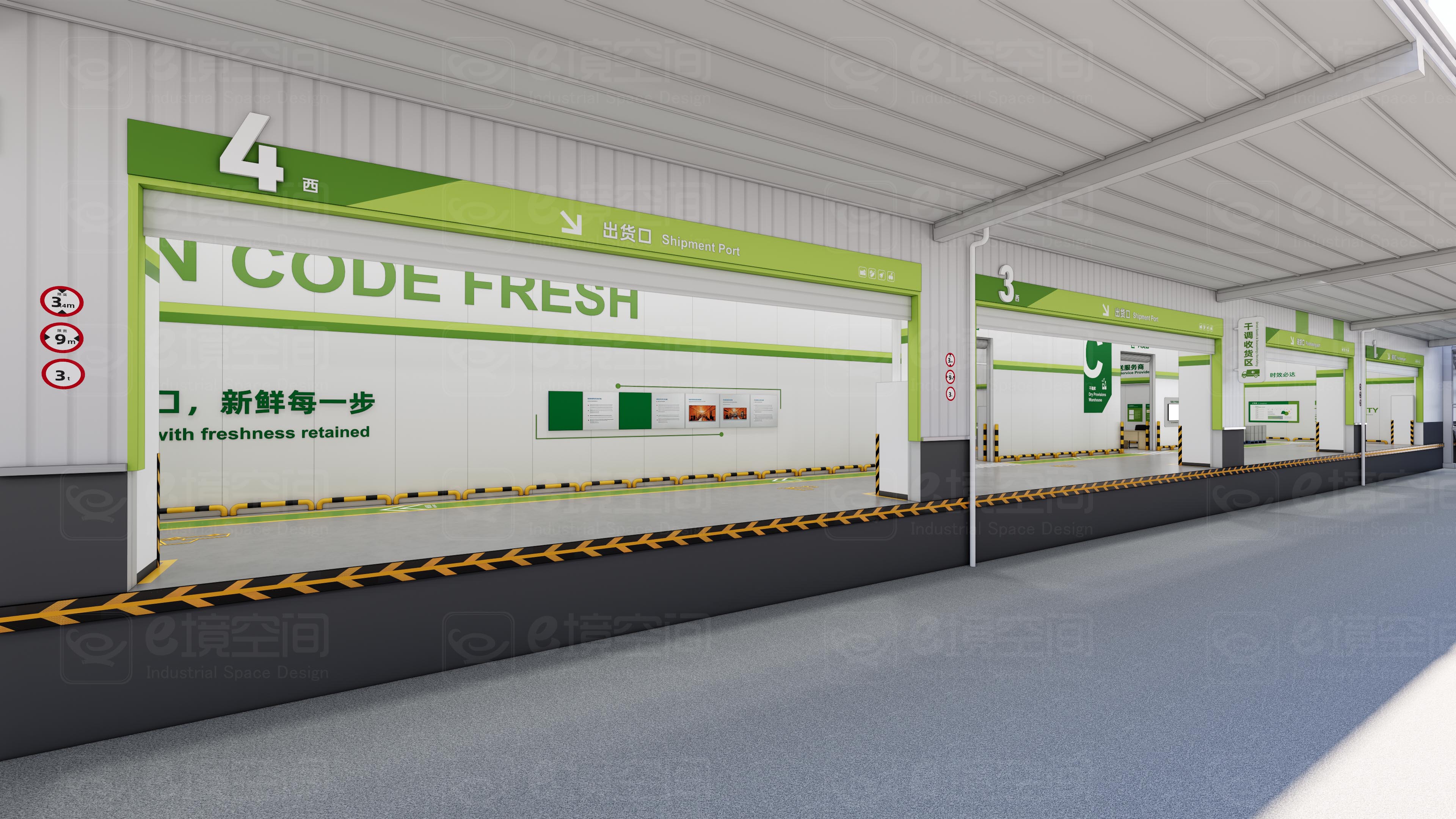 在工业与文旅深度融合的浪潮中,如何让传统生鲜供应链车间突破生产功能的边界,成为兼具科技美学与文化体验的沉浸式空间?e境空间以安徽绿码鲜生供应链管理有限公司目视化设计项目为契机,以“视觉**”为**理念,将一座位于合肥肥东的冷链物流车间,重塑为国内**“生鲜工业美学示范基地”,开启工业旅游4.0时代的创新实践。