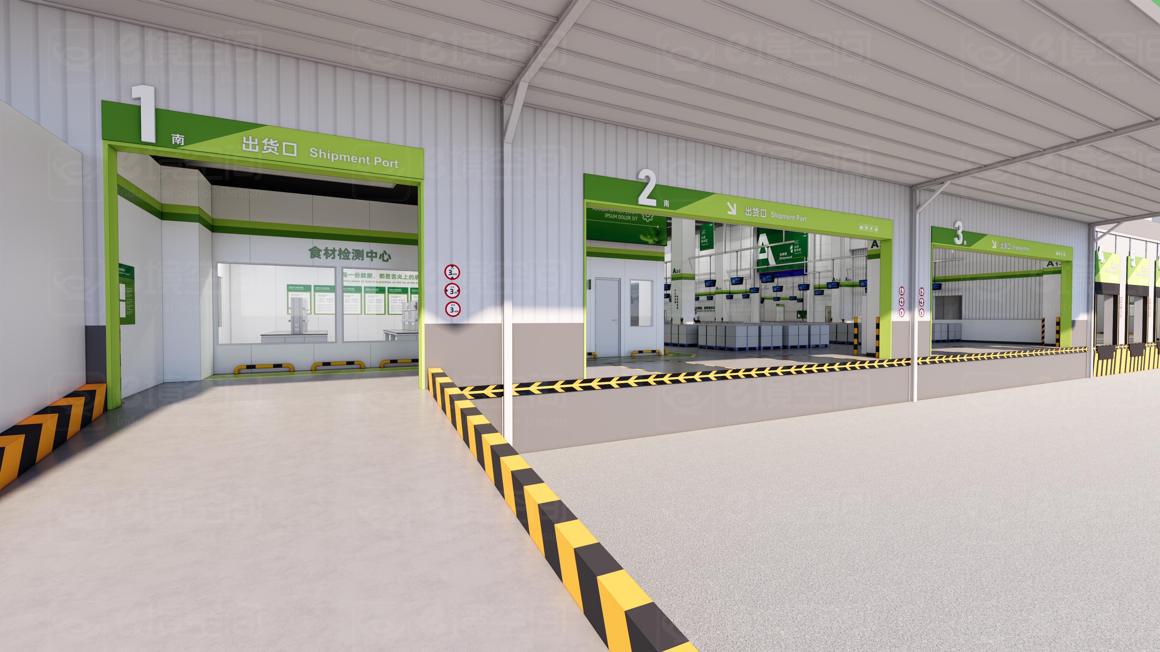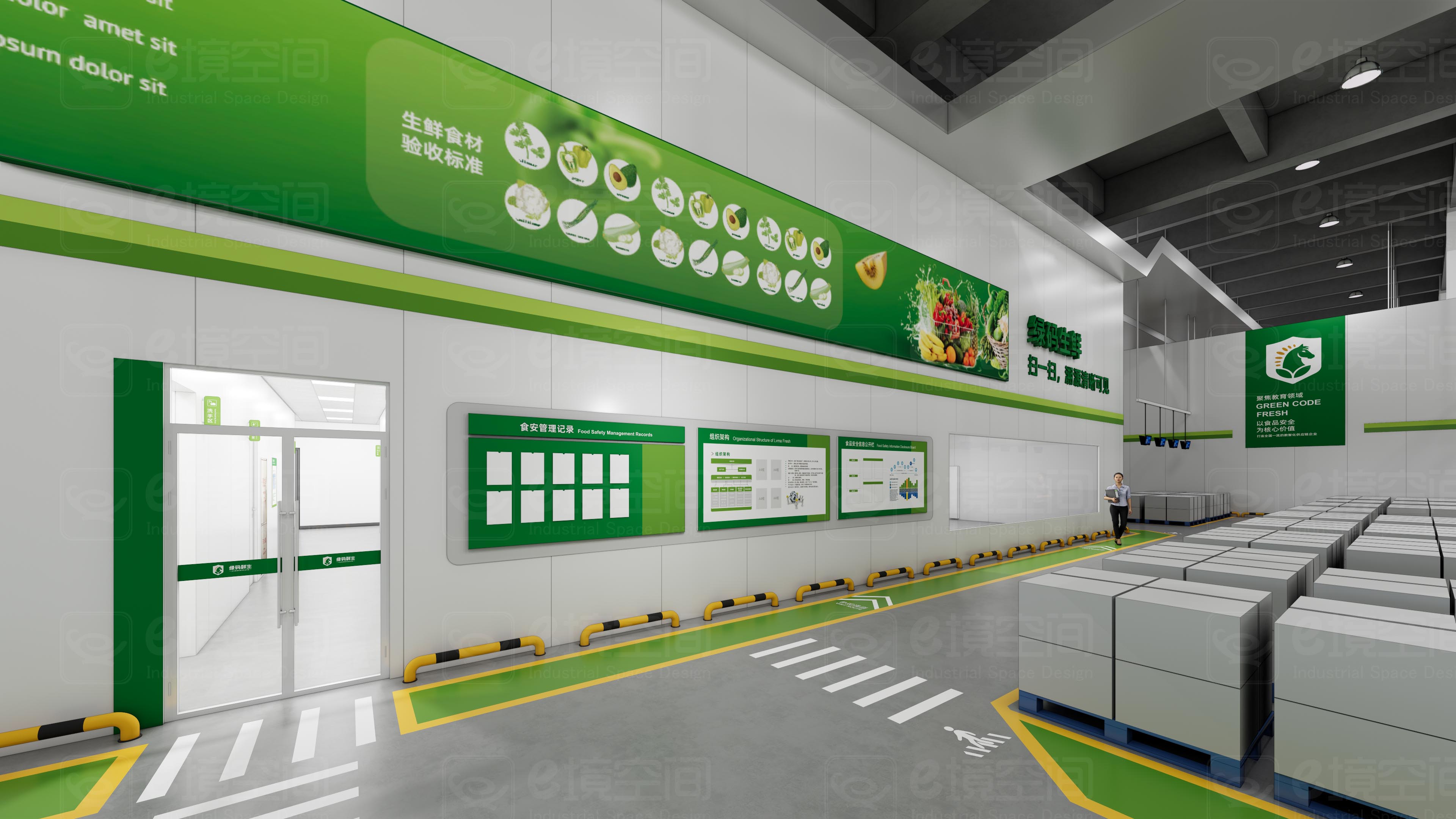 作为供应链**场景,车间需满足严格的食品安全管理与生产效率要求。e境空间创新性地将目视化标识系统(VIS)与空间美学深度融合: